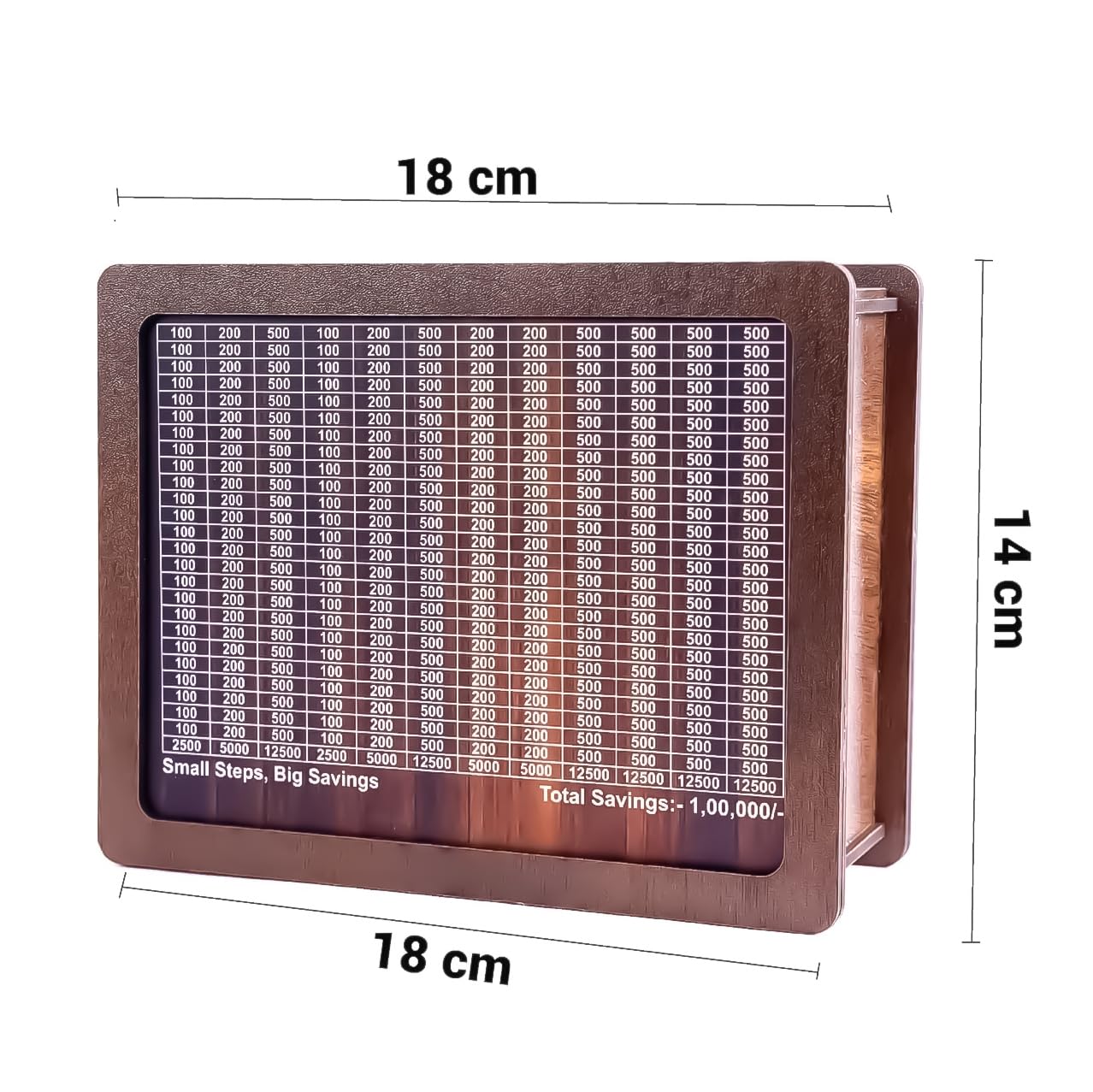 ✅ Target-Based Savings System: Features a printed grid on top with labeled amounts to help you reach your ₹1,00,000 goal step by step.