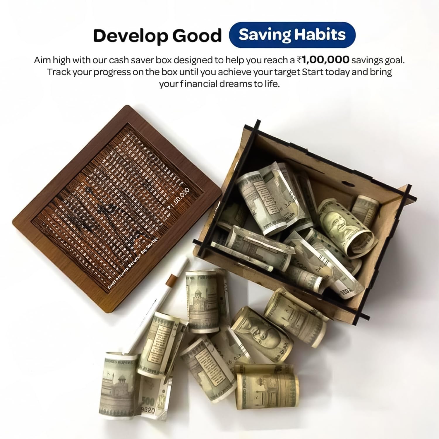 Whether you're saving for a dream, a plan, or just peace of mind this box is your perfect companion. Don't wait to build your future ₹1,00,000 at a time!